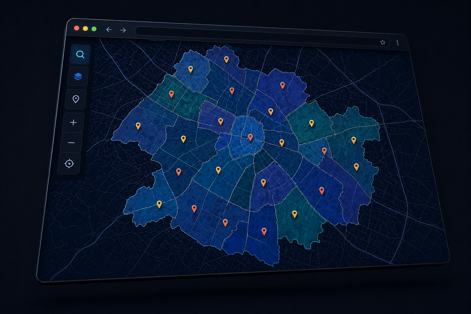 Хийтмап и хороплет на цената на кв.м. за 203 квартала в реално време.